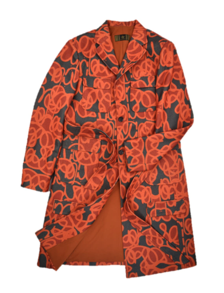 Orange And Gray Graffiti Print Long Coat Material :Sustainable Sourced Fabric Color : Orange And...