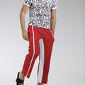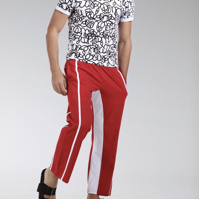 Asymmetrical Neckline Short Sleeve Graffiti Tasou Print Shirt With Red Ankle Length Pants