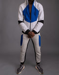 A signature blue hexagon design on the chest defines the jacket, echoing TASOU’s emblem of power and purpose. The pants feature a thick U-hem waistline and a subtle puff at the ankles—delivering a flattering, modern silhouette. Functional pockets and stretch-cuffed hems add everyday practicality to the set.