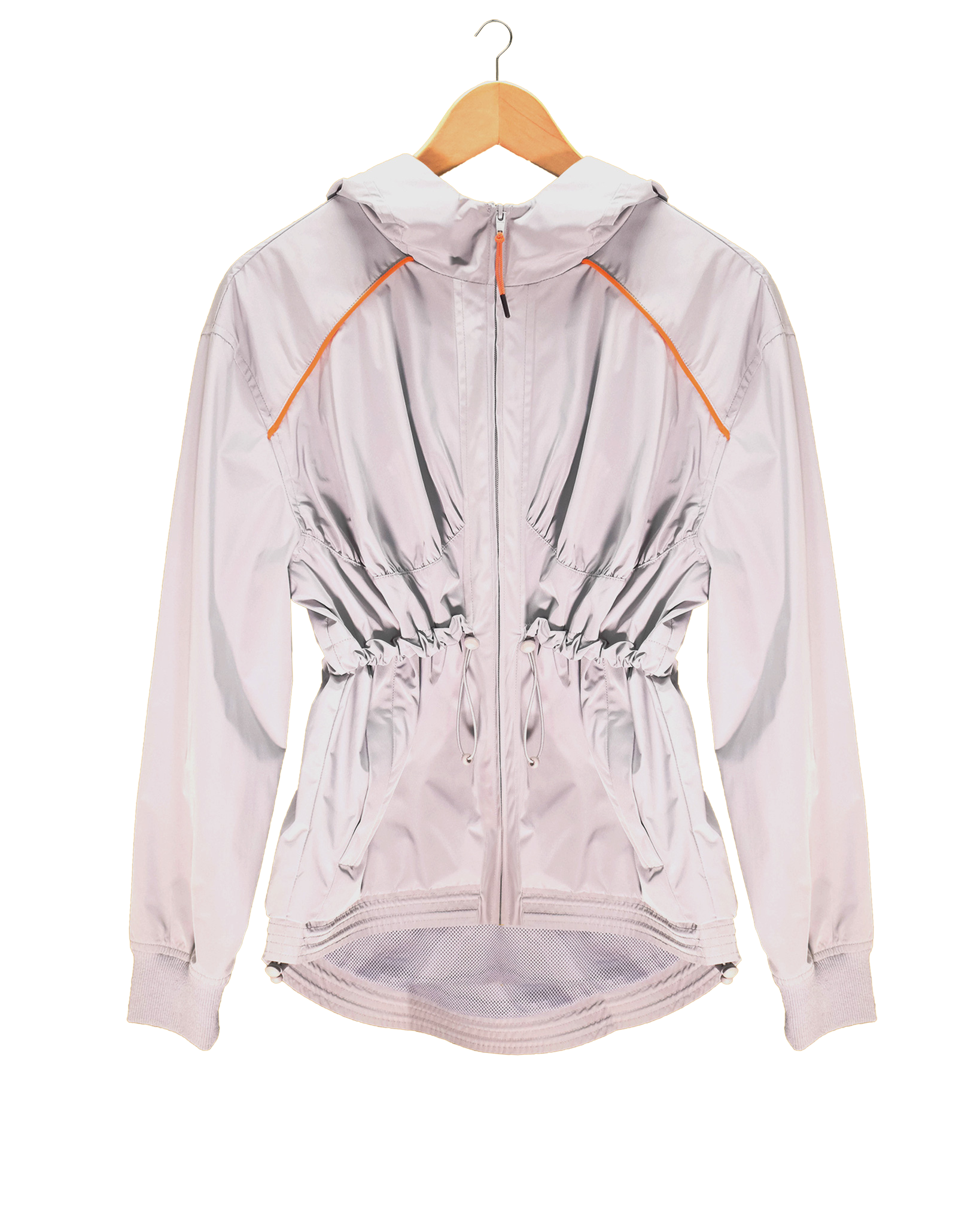 Light Weight Jacket With Drawstrings And Orange Accents.
